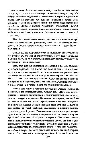 Отец был широко образован, его познания во всех областях культуры поражали. Он считал, что поэт не может не интересоваться живописью, музыкой, театром— всеми вопросами художественного творчества: « Какая радость— открыть для себя любого из замечательных художников. Вдруг ты впервые узнаешь Рембранта или Шуберта, Ван-Гога или Лорку, Сезанна или Скрябина, Матисса или Равеля! Какой это праздник каждый раз ».