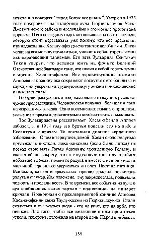 неустанно повторяя:“ перед Богом все равны”. Умер он в 1923 году, похоронен на кладбище аула Гюрюльдеуюк Усть- Джегутинского района и неслучайно к его могиле протоптана дорожка. О его последних годах жизни сложена почти легенда, которую стоит пересказать уже потому, что все предметы, принадлежащие Хасану-афенди считаются целебными. Люди ходят на его могилу помолиться, уносят с собой горсть земли как охраняющий талисман. Его зять Зулкарная Сеитович Токов уверен, что остался ж ить на ф ронте Великой Отечественной благодаря тому, что носил с собой горсть земли с могилы Хасана-афенди. Все здравствующие потомки Аппоева как зеницу ока сохраняют лоскутья с его башлыка и сарха, они уверены- в трудную минуту жизни прикосновение к ним дает силы.