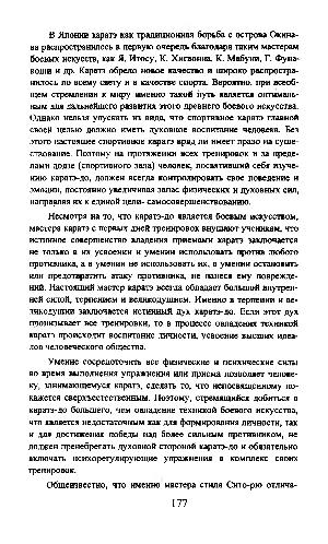 В Японии каратэ как традиционная борьба с острова Окинава распространилось в первую очередь благодаря таким мастерам боевых искусств, как Я. Итосу, К. Хигаонна, К. Мабуни, Г. Фунакоши и др. Каратэ обрело новое качество и широко распространилось по всему свету и в качестве спорта. Вероятно, при всеобщем стремлении к миру именно такой путь является оптимальным для дальнейшего развития этого древнего боевого искусства. Однако нельзя упускать из вида, что спортивное каратэ главной своей целью должно иметь духовное воспитание человека. Без этого настоящее спортивное каратэ вряд ли имеет право на существование. Поэтому на протяжении всех тренировок и за пределами додзе( спортивного зала) человек, посвятивший себя изучению каратэ-до, должен всегда контролировать свое поведение и эмоции, постоянно увеличивая запас физических и духовных сил, направляя их к единой цели- самосовершенствованию.