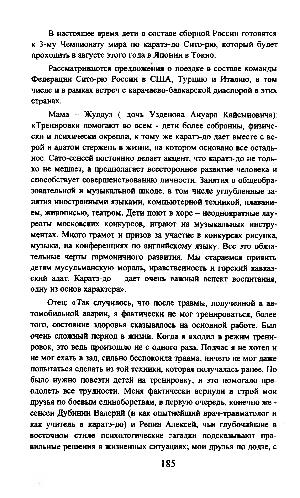 Мама- Жулдуз( дочь Узденова Ануара Кайсыновича): « Тренировки помогают во всем- дети более собранны, физически и психически окрепли, к тому же каратэ-до дает вместе с верой и адатом стержень в жизни, на котором основано все остальное. Сато-сенсей постоянно делает акцент, что каратэ-до не только не мешает, а предполагает всестороннее развитие человека и способствует совершенствованию личности. Занятия в общеобразовательной и музыкальной школе, в том числе углубленные занятия иностранными языками, компьютерной техникой, плаванием, живописью, театром. Дети поют в хоре- неоднократные лауреаты московских конкурсов, играют на музыкальных инструментах. Много грамот и призов за участие в конкурсах рисунка, музыки, на конференциях по английскому языку. Все это обязательные черты гармоничного развития. Мы стараемся привить детям мусульманскую мораль, нравственность и горский кавказский адат. Каратэ-до- дает очень важный аспект воспитания, одну из основ характера ».