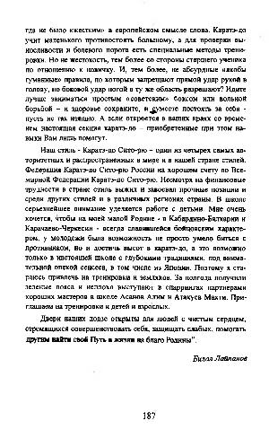 гда не было « жестким » в европейском смысле слова. Каратэ-до учит маленького противостоять большому, а для проверки выносливости и болевого порога есть специальные методы тренировки. Но не жестокость, тем более со стороны старшего ученика по отношению к новичку. И, тем более, не абсурдные « якобы гуманные » правила, по которым запрещают прямой удар рукой в голову, но боковой удар ногой в ту же область разрешают? Идите лучше заниматься простым « советским » боксом или вольной борьбой- и здоровье сохраните, и ^умеете постоять за себя • пусть не так изящно. А если откроется в ваших краях со временем настоящая секция каратэ-до- приобретенные при этом навыки Вам лишь помоет.