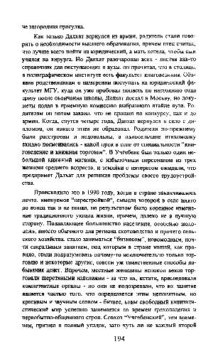 Как только Далхат вернулся из армии, родители стали говорить о необходимости высшего образования, причем отец считал, что лучше всего пойти на юридический, а мать хотела, чтобы сын учился на хирурга. Но Далхат разочаровал всех- листая как-то справочник для поступающих в вузы, он прочитал, что в столице, в полиграфическом институте есть факультет книговедения. Объявив родственникам о намерении поступать на юридический факультет МГУ, куда он уже пробовал попасть по настоянию отца сразу после окончания школы, Далхат поехал в Москву, но докуметы подал в приемную комиссию выбранного втайне вуза. Родителям он потом заявил, что не прошел по конкурсу, как и до армии. Когда, спутся четыре года, Далхат вернулся в село с дипломом, он никого этим не обрадовал. Родители по-прежнему были расстроены и недовольны, а односельчане втихомолку ехидно посмеивались- какой прок в селе от специальности“ книговедение и книжная торговля”. В Учгебене был только один небольшой книжный магазин, с избыточным персоналом из трех женщин среднего возраста, и земляки с интересом ожидали, что предпримет Далхат для решения проблемы своего трудоустройства.