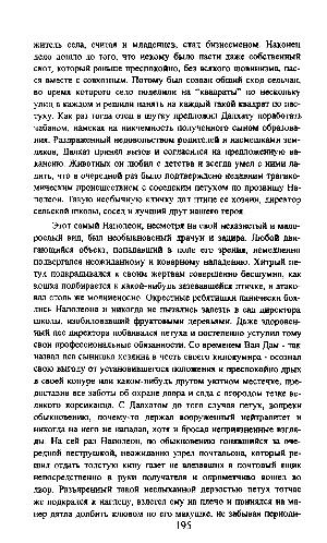 житель села, считая и младенцев, стал бизнесменом. Наконец дело дошло до того, что некому было пасти даже собственный скот, который раньше преспокойно, без всякого шовинизма, пасся вместе с совхозным. Потому был созван общий сход сельчан, во время которого село поделили на“ квадраты” по нескольку улиц в каждом и решили нанять на каждый такой квадрат по пастуху. Как раз тогда отец в шутку предложил Далхату поработать чабаном, намекая на никчемность полученного сыном образования. Раздраженный недовольством родителей и насмешками земляков, Далхат принял вызов и согласился на предложенную вакансию. Животных он любил с детства и всегда умел с ними ладить, что в очередной раз было подтверждено недавним трагикомическим происшествием с соседским петухом по прозвищу Наполеон. Такую необычную кличку дал птице ее хозяин, директор сельской школы, сосед и лучший друг нашего героя.