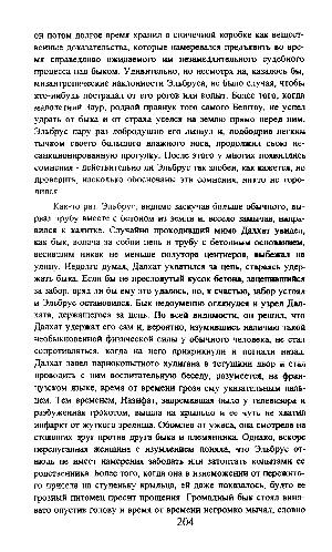 Как-то раз, Эльбрус, видимо заскучав больше обычного, вырвал трубу вместе с бетоном из земли и, весело замычав, направился к калитке. Случайно проходивший мимо Далхат увидел, как бык, волоча за собой цепь и трубу с бетонным основанием, весившим никак не меньше полутора центнеров, выбежал на улицу. Недолго думая, Далхат ухватился за цепь, стараясь удержать быка. Если бы не пресловутый кусок бетона, зацепившийся за забор, вряд ли бы ему это удалось, но, к счастью, забор устоял и Эльбрус остановился. Бык недоуменно оглянулся и узрел Далхата, держащегося за цепь. По всей видимости, он решил, что Далхат удержал его сам и, вероятно, изумившись наличию такой необыкновенной физической силы у обычного человека, не стал сопротивляться, когда на него прикрикнули и погнали назад. Далхат завел парнокопытного хулигана в тетушкин двор и стал проводить с ним воспитательную беседу, разумеется, на французском языке, время от времени грозя ему указательным пальцем. Тем временем, Назифат, задремавшая было у телевизора и разбуженная грохотом, вышла на крыльцо и ее чуть не хватил инфаркт от жуткого зрелища. Обомлев от ужаса, она смотрела на стоявших друг против друга быка и племянника. Однако, вскоре перепуганная женщина с изумлением поняла, что Эльбрус отнюдь не имеет намерения забодать или затоптать копытами ее родственника. Более того, когда она в изнеможении от пережитого присела на ступеньку крыльца, ей даже показалось, будто ее грозный питомец просит прощения. Громадный бык стоял виновато опустив голову и время от времени негромко мычал, словно
