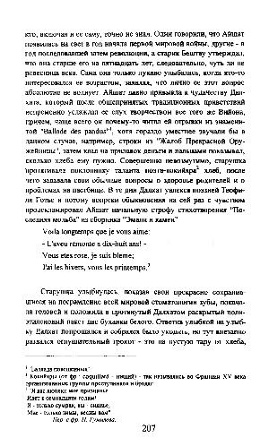 кто, включая и ее саму, точно не знал. Одни говорили, что Айшат появилась на свет в год начала первой мировой войны, другие- в год последовавшей затем революции, а старик Бештау утверждал, что она старше его на пятнадцать лет, следовательно, чуть ли не ровесница века. Сама она только лукаво улыбалась, когда кто-то интересовался ее возрастом, заявляя, что лично ее этот вопрос абсолютно не волнует. Айшат давно привыкла к чудачеству Далхата, который после общепринятых традиционных приветствий непременно услаждал ее слух творчеством все того же Вийона, причем, чаще всего он почему-то читал ей отрывки из знаменитой " Ballade des pandus " 1, хотя гораздо уместнее звучали бы в данном случае, например, строки из " Жалоб Прекрасной Оружейницы ", затем клал на прилавок деньги и пальцами показывал, сколько хлеба ему нужно. Совершенно невозмутимо, старушка Протягивала поклоннику таланта поэта-кокийяра2 хлеб, после чего задавала свои обычные вопросы о здоровье родителей и о проблемах на пастбище. В те дни Далхат увлекся поэзией Теофиля Готье и потому вопреки обыкновения на сей раз с чувством продекламировал Айшат начальную строфу стихотворения " Последняя мольба " из сборника " Эмали и камеи”