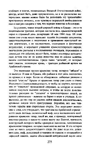 Безусловно, пламя второй мировой войны в Крыму- это и та национальная трагедия, которая постигла весь крымскотатарский народ в страшный день депортации 18 мая 1944 года. Об этом также уже очень много написано: изданы подлинные документы, свидетельствующие о подготовке и проведении преступной акции депортации, о ее последствиях, означавших и физическое истребление, и моральное унижение крымскотатарского народа; запечатлены рассказы и воспоминания очевидцев, переживших и помнящих эти события; может быть, только некоторые исторические детали еще не до конца известны или не совсем понятны нашим соотечественникам. Среди таких " деталей ", от которых веет ужасом, леденящим кровь,- трагедия рыбацкой артели на Арабатской стрелке.