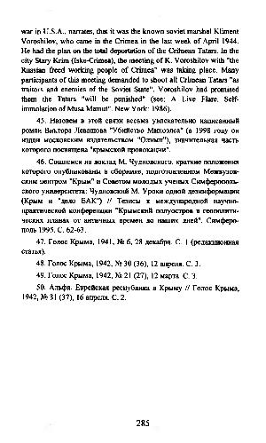 46. Сошлемся на доклад М. Чудновского, краткие положения которого опубликованы в сборнике, подготовленном Межвузовским центром " Крым " и Советом молодых ученых Симферопольского университета: Чудновский М. Уроки одной дезинформации( Крым и " дело БАК ") // Тезисы к международной научнопрактической конференции " Крымский полуостров в геополитических планах от античных времен до наших дней ". Симферополь 1995. С. 62-63.