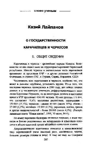 О ГОСУДАРСТВЕННОСТИ КАРАЧАЕВЦЕВ И ЧЕРКЕСОВ