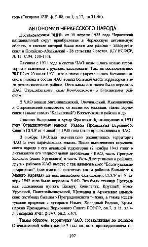 В ноябре 1943года значительно расширилась территория ЧАО за счет карачаевских земель. После выселенения карачаевского народа с его исконной территории( 2 ноября 1943 года) и ликвидации его национальной автономии- КАО, часть Преградненского( ныне Урупского) и часть Усть-Джегугинского районов, других районов КАО вместе с так называемыми " Ессентукскимн прирезками "( где имелись пахотные земли районов Большого и Малого Карачая) по постановлению Совнаркома СССР от 6 ноября 1943 года были переданы ЧАО. Эго были станица Преградная, населенные пункты Бахмут, Кизильчук, Круглый, Ново- Урупский, Пангелеймоновский, Щелканка и Архызе кие альпийские пастбища бывшего Преградненского района, а также Ессентукские прирезки с хуторами Ильич, Холодный Родник, Крым.( Архив Президиума Верховного Совета РСФСР, оп. 7, д. 12, лл. 4- 5; Госархив КЧР, ф. 347, оп. 2, л. 47).