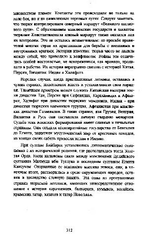 множеством племен. Контакты эти происходили не только на поле боя, но и на оживленных торговых путях. Следует заметить, что тюрки контролировали северный маршрут « Великого шелкового пути ». С образованием мамлюкских государств и захватом тюрками Константинополя южный маршрут также оказался под их контролем. Это не осталось незамеченным: по просьбе правителей многих стран их приглашали для борьбы с внешними и внутренними врагами. Истории известно: тюрки часто не ладили между собой, что приводило к конфликтам. Войны эти отличались особой жестокостью, не покорявшихся, как правило, продавали в рабство. Их история неразрывно связана с историей Китая, Персии, Византии, Индии и Халифата.