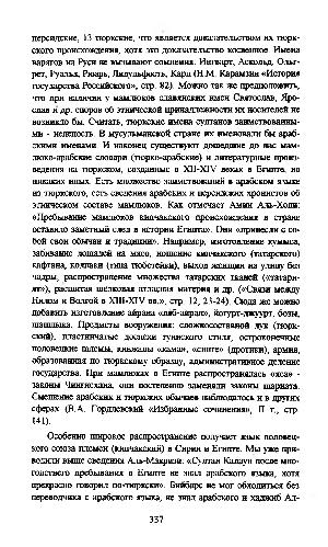 Особенно широкое распространение получает язык половецкого союза племен( кипчакский) в Сирии и Египте. Мы уже приводили выше сведения Аль-Макризи: « Султан Калаун после многолетнего пребывания в Египте не знал арабского языка, хотя прекрасно говорил по-тюркски ». Бийбарс не мог обходиться без переводчика с арабского языка, не знал арабского и хаджиб Ал-