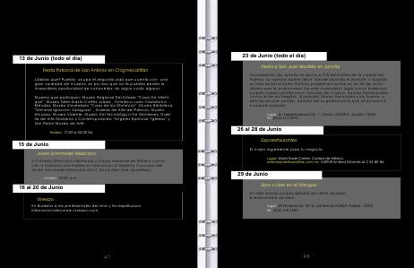 Museos que participan: Museo Regional Del Estado“ Casa De Alfeñique”, Museo Taller Erasto Cortés Juárez, Fototeca Juan Crisóstomo Méndez, Museo Universtario“ Casa de los Muñecos”, Museo Biblioteca“ General Ignacion Zaragoza”, Galería de Arte del Palacio, Museo Amparo, Museo Viviente, Museo Del Tecnológico De Monterrey, Galería de Arte Moderno y Contemporáneo“ Ángeles Espinosa Yglesias” y San Pedro Museo de Arte.