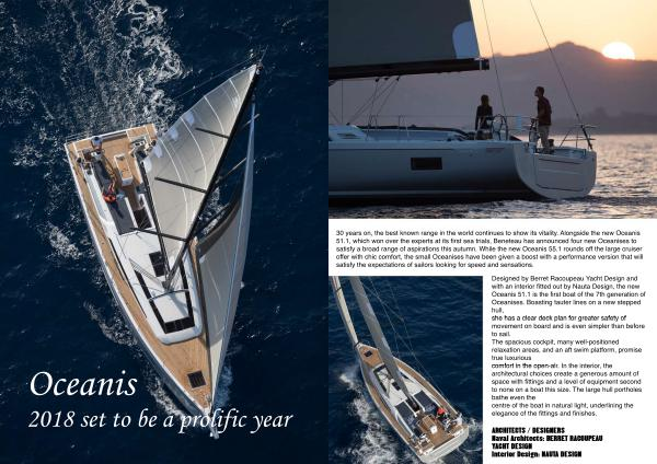 30yearson, thebestknownrangeintheworldcontinuestoshowitsvitality. AlongsidethenewOceanis 51.1, whichwonovertheexpertsatitsfirstseatrials, BeneteauhasannouncedfournewOceanisesto satisfyabroadrangeofaspirationsthisautumn. WhilethenewOceanis55.1roundsofthelargecruiser oferwithchiccomfort, thesmalOceaniseshavebeengivenaboostwithaperformanceversionthatwil satisfytheexpectationsofsailorslookingforspeedandsensations.