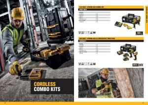Contains DCF801N 1 Pc DCD701N 1 Pc DCB127 2 Pcs DCB112 1 Pc 18V 2Ah Battery 2 Pcs No Load Speed 1 Pc T Stak Box 1 Pc 12V MAX * LITHIUM ION COMBO KIT DCK2110D2T CORDLESS COMBO KITS 57 56 Contains DCD709N 1 Pc DCF809N 1 Pc DCB184 2 Pc DCB115 1 Pc 18V 4Ah Battery 2 Pcs Multi-Volt Charger 1 Pc Soft Bag 1 Pc 20V MAX * LITHIUM ION G2 BRUSHLESS TWIN PACK DCK2062P2