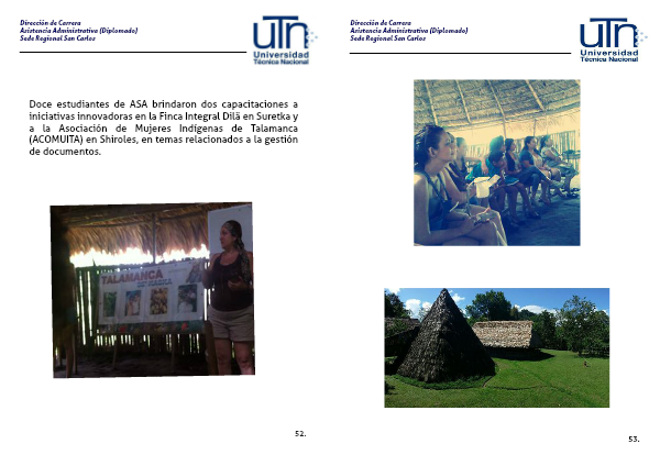 Doce estudiantes de ASA brindaron dos capacitaciones a iniciativas innovadoras en la Finca Integral Dilä en Suretka y a la Asociación de Mujeres Indígenas de Talamanca (ACOMUITA) en Shiroles, en temas relacionados a la gestión de documentos.