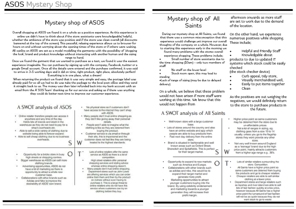 During our mystery shop at All Saints, we found that there was a common misconception that this experience would challenge yet improve our overall thoughts of the company on a whole. However, due to starting this experience early in the morning we found many problems with the stores overall experience shopping. These problems include;