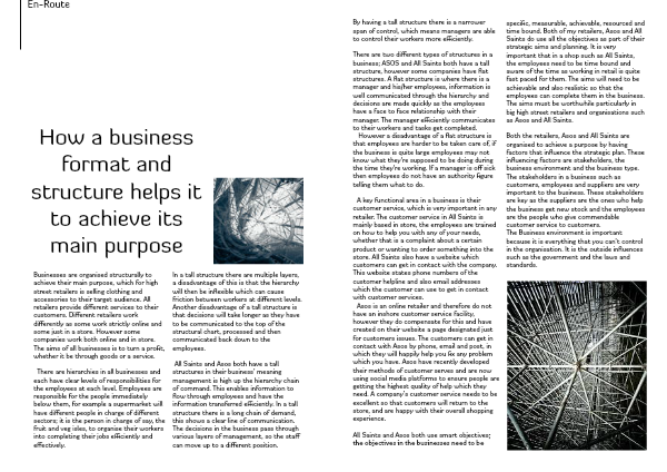 Businesses are organised structurally to achieve their main purpose, which for high street retailers is selling clothing and accessories to their target audience. All retailers provide different services to their customers. Different retailers work differently as some work strictly online and some just in a store. However some companies work both online and in store. The aims of all businesses is to turn a profit, whether it be through goods or a service.