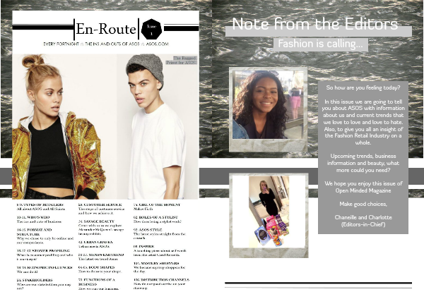 In this issue we are going to tell you about ASOS with information about us and current trends that we love to love and love to hate. Also, to give you all an insight of the Fashion Retail Industry on a whole.