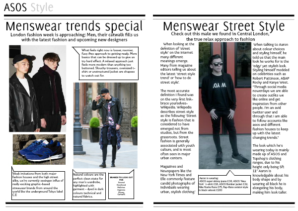 When talking to Aaron about colour choices and styling himself, he told us that the main look he works for is the 'edgy' yet stylish look. Styling himself modeled on celebrities such as Robert Pattinson, A$AP Rocky and Kanye West. "Through social media nowerdays we are able to create outfits we like online and get inspiration from other people. I'm an avid twitter user and through that i am able to follow accounts like asos and different fashion houses to keep up with the latest changing trends."