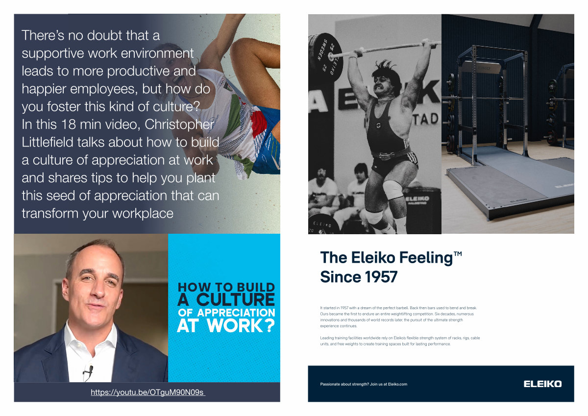 Leading training facilities worldwide rely on Eleiko’ s flexible strength system of racks, rigs, cable units, and free weights to create training spaces built for lasting performance.