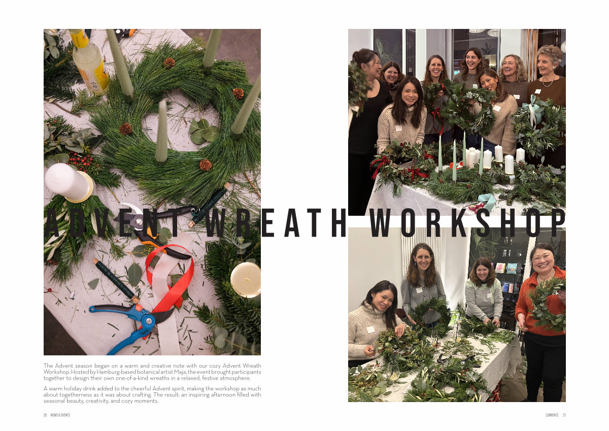 The Advent season began on a warm and creative note with our cozy Advent Wreath Workshop. Hosted by Hamburg-based botanical artist Maja, the event brought participants together to design their own one-of-a-kind wreaths in a relaxed, festive atmosphere.