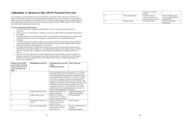 Addendum A : Return to Play ( RTP ) Protocol Overview
