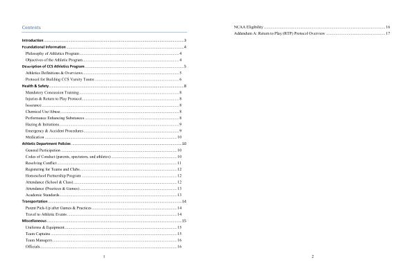 NCAA Eligibility ....................................................................................................................... 16 Addendum A : Return to Play ( RTP ) Protocol Overview .......................................................... 17