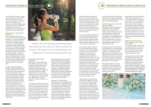 As the reach of the blood flow through the capillary network is enhanced by massage , it helps to drive magnesium deeper into the tissue fibres for faster relaxation effects . Ligaments and joints start to let go and function better as magnesium improves flexibility , and those muscle ‘ rocks ’ become pebbles , gradually diminishing altogether as the magnesium and extra hydration kick in to bring back flexibility and suppleness to muscles .