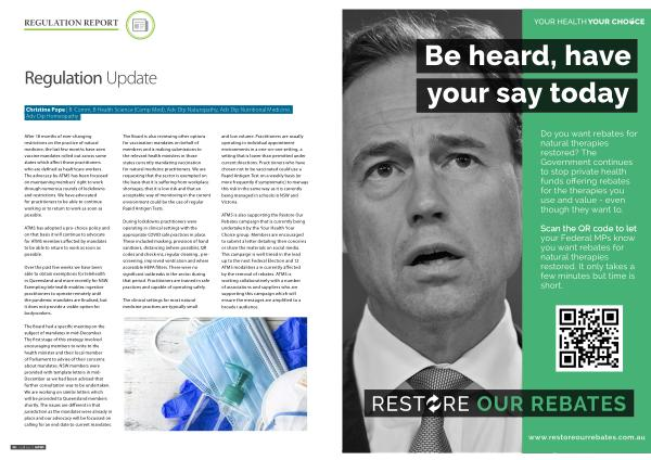 Do you want rebates for natural therapies restored ? The Government continues to stop private health funds offering rebates for the therapies you use and value - even though they want to .