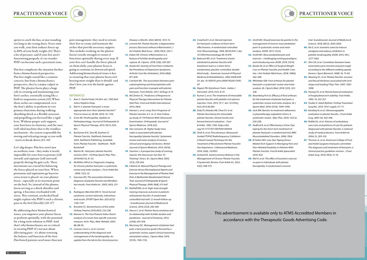 42 . Wearing SC , et al . Plantar fasciitis : are pain and fascial thickness associated with arch shape and loading ? Phys Ther . 2007 , 1002- 1008 .