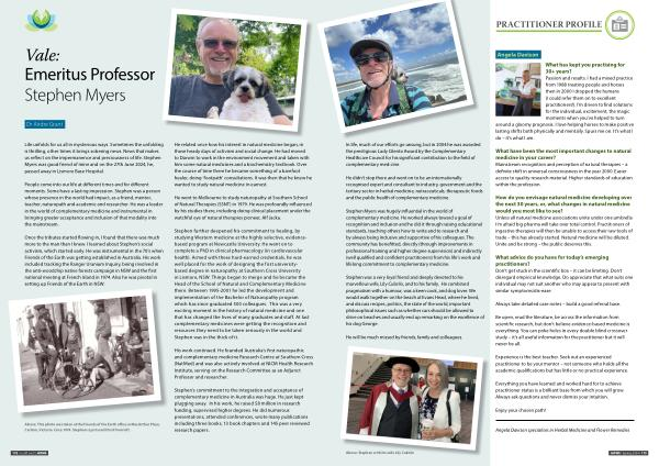 People come into our life at different times and for different moments . Some have a lasting impression . Stephen was a person whose presence in the world had impact , as a friend , mentor , teacher , naturopath and academic and researcher . He was a leader in the world of complementary medicine and instrumental in bringing greater acceptance and inclusion of that modality into the mainstream .