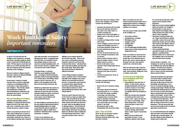 These are the second most common types of injury in workplaces . Safework Australia defines slips , trips and falls as follows :