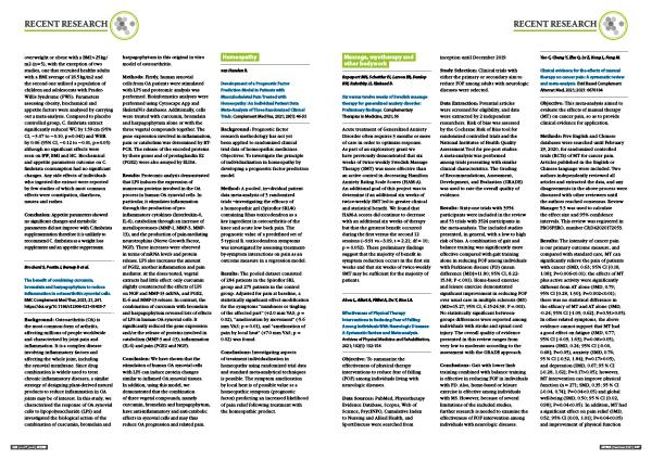 Six versus twelve weeks of Swedish massage therapy for generalized anxiety disorder : Preliminary findings . Complementary Therapies in Medicine , 2021 ; 56