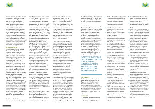 26 . Iyendo TO . Exploring the effect of sound and music on health in hospital settings : A narrative review . International journal of nursing studies 2016 ; 63 : 82-100 .