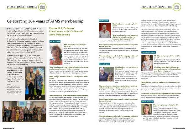 Honour Roll : Profiles of Practitioners with 30 + Years of ATMS Membership
