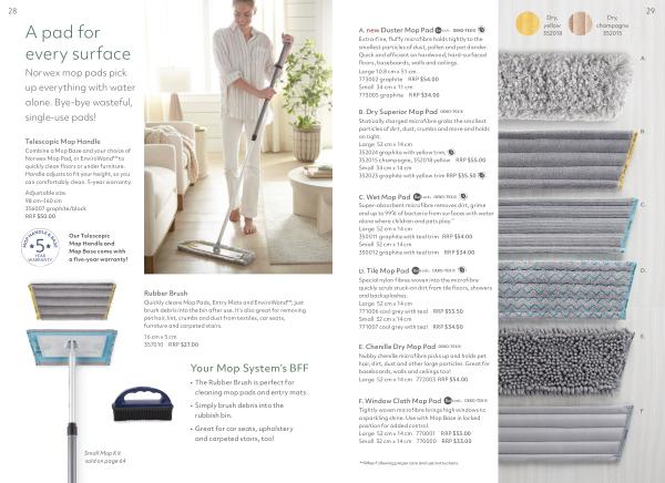 Telescopic Mop Handle Combine a Mop Base and your choice of Norwex Mop Pad , or EnviroWand™ to quickly clean floors or under furniture . Handle adjusts to fit your height , so you can comfortably clean . 5-year warranty .