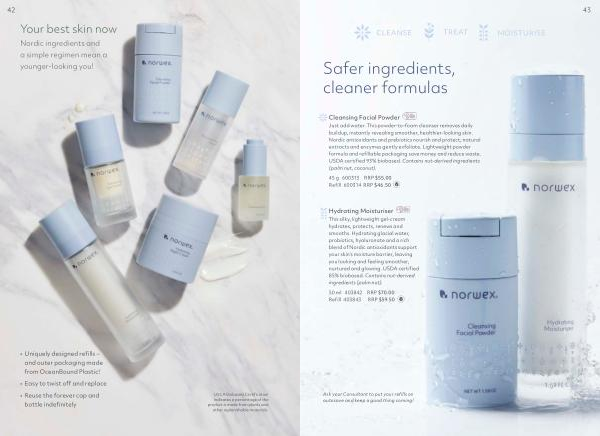 Cleansing Facial Powder Just add water . This powder-to-foam cleanser removes daily buildup , instantly revealing smoother , healthier-looking skin . Nordic antioxidants and prebiotics nourish and protect ; natural extracts and enzymes gently exfoliate . Lightweight powder formula and refillable packaging save money and reduce waste . USDA certified 93 % biobased . Contains nut-derived ingredients ( palm nut , coconut ).