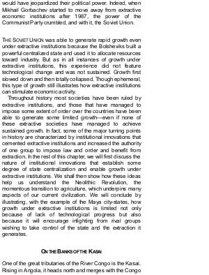 would have jeopardized their political power. Indeed, when Mikhail Gorbachev started to move away from extractive economic institutions after 1987, the power of the Communist Party crumbled, and with it, the Soviet Union.