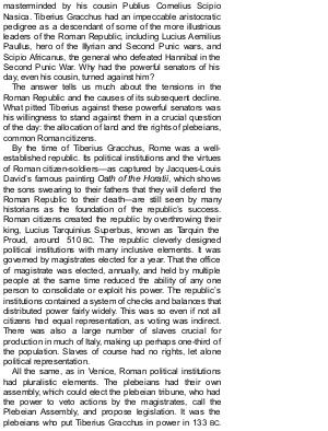 masterminded by his cousin Publius Cornelius Scipio Nasica. Tiberius Gracchus had an impeccable aristocratic pedigree as a descendant of some of the more illustrious leaders of the Roman Republic, including Lucius Aemilius Paullus, hero of the Illyrian and Second Punic wars, and Scipio Africanus, the general who defeated Hannibal in the Second Punic War. Why had the powerful senators of his day, even his cousin, turned against him?