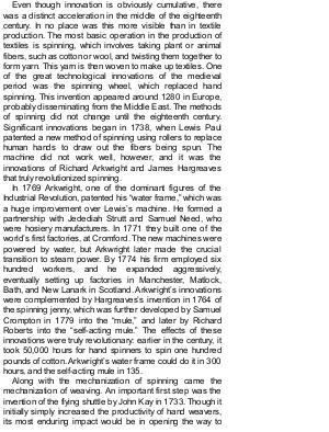 mechanization of weaving. An important first step was the