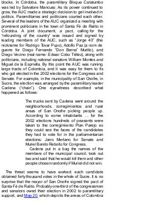 blocks. In Córdoba, the paramilitary Bloque Catatumbo