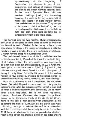 of all Uzbeki cotton. The schoolchildren are supposedly