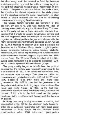 democracy was gradually re-created in Brazil, the Workers’