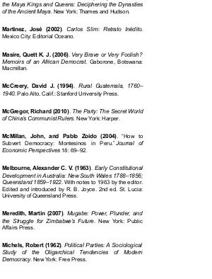 McMillan, John, and Pablo Zoido( 2004).“ How to Subvert Democracy: Montesinos in Peru.” Journal of Economic Perspectives 18: 69 – 92.