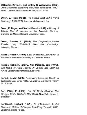 Owen, E. Roger, and Şevket Pamuk (1999) . A History of