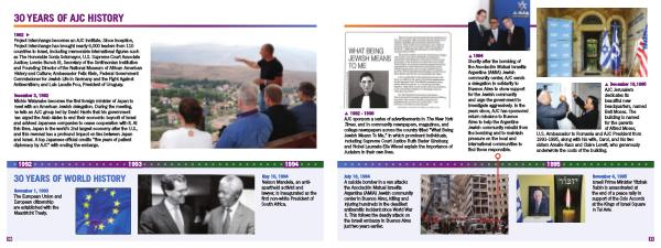 1992 - 1996 AJC sponsors a series of advertisements in The New York Times , and in community newspapers , magazines , and college newspapers across the country titled “ What Being Jewish Means To Me ,” in which prominent individuals , including Supreme Court Justice Ruth Bader Ginsburg and Nobel Laureate Elie Wiesel explain the importance of Judaism in their own lives .