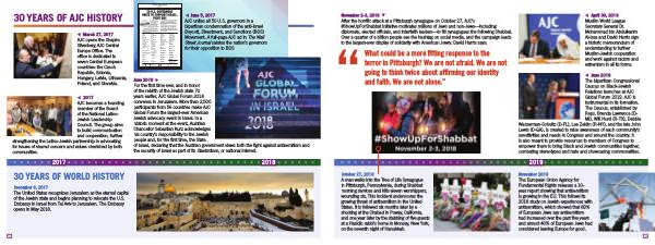 November 2-3 , 2018 After the horrific attack at a Pittsburgh synagogue on October 27 , AJC ’ s # ShowUpForShabbat initiative motivates millions of Jews and non-Jews — including diplomats , elected officials , and interfaith leaders — to fill synagogues the following Shabbat . Over a quarter of a billion people see the hashtag on social media , and the campaign leads to the largest-ever display of solidarity with American Jewry . David Harris says :