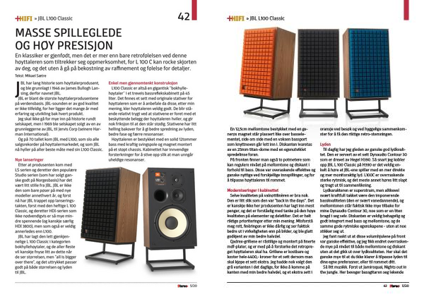 Til daglig har jeg gleden av ganske god lydkvalitet . Den er servert av et sett Dynaudio Contour 30 som er drevet av Hegel H390 . Så snart jeg kobler opp JBL L 100 Classic på H390 er det veldig enkelt å høre at JBL-ene spiller med en mer direkte og mer monitoraktig lyd . L100C er overraskende sterke rytmisk , og det meste annet høres litt slapt og tregt ut til sammenlikning .