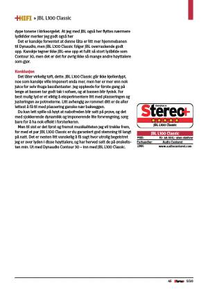 Men til sist er det først og fremst musikaliteten jeg vil trekke frem , for med et par JBL L100 Classic er du garantert god stemning til langt på natt . Det er nesten litt vanskelig å få sagt hvor utrolig begeistret jeg er over lyden i disse høyttalere , og har herved satt de på ønskelisten min . Ut med Dynaudio Contour 30 – inn med JBL L100 Classic .