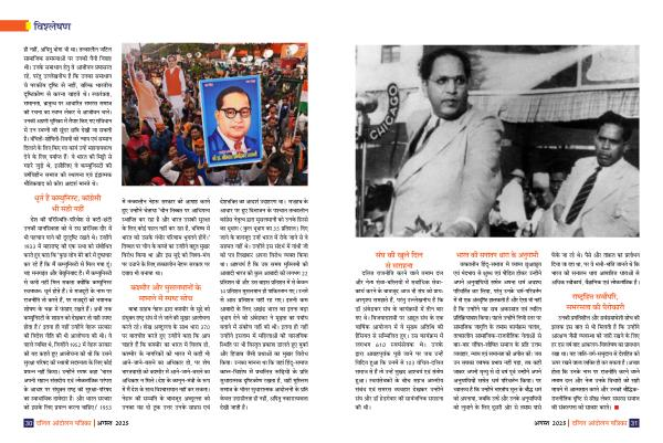 उनकी प्रगक्तशील और सर्वसमावेशी सोच की झलक इस बात से भी क्मलती है क्क उत्हनोंिे आरक्षण जैसी वयवस्ा को जारी रखने के क्लए हर दस वर्ष बाद आकलन-क्वशलेषण का प्रावधान रखा था । यह जाक्त-वर्ग-समुदाय से देशक्हत को ऊपर रखने वाला व्यक्त ही कर सकता है । अचछा होता क्क उनके नाम पर राजनीक्त करने वाले तमाम दल और नेता उनके क्वचारनों को सही मायने में आतमसात करते और उनकी बौक्द्धक- राजनीक्तक दृन्ष्ट से सीख लेकर समरस समाज की संकलपिा को साकार करते । �
